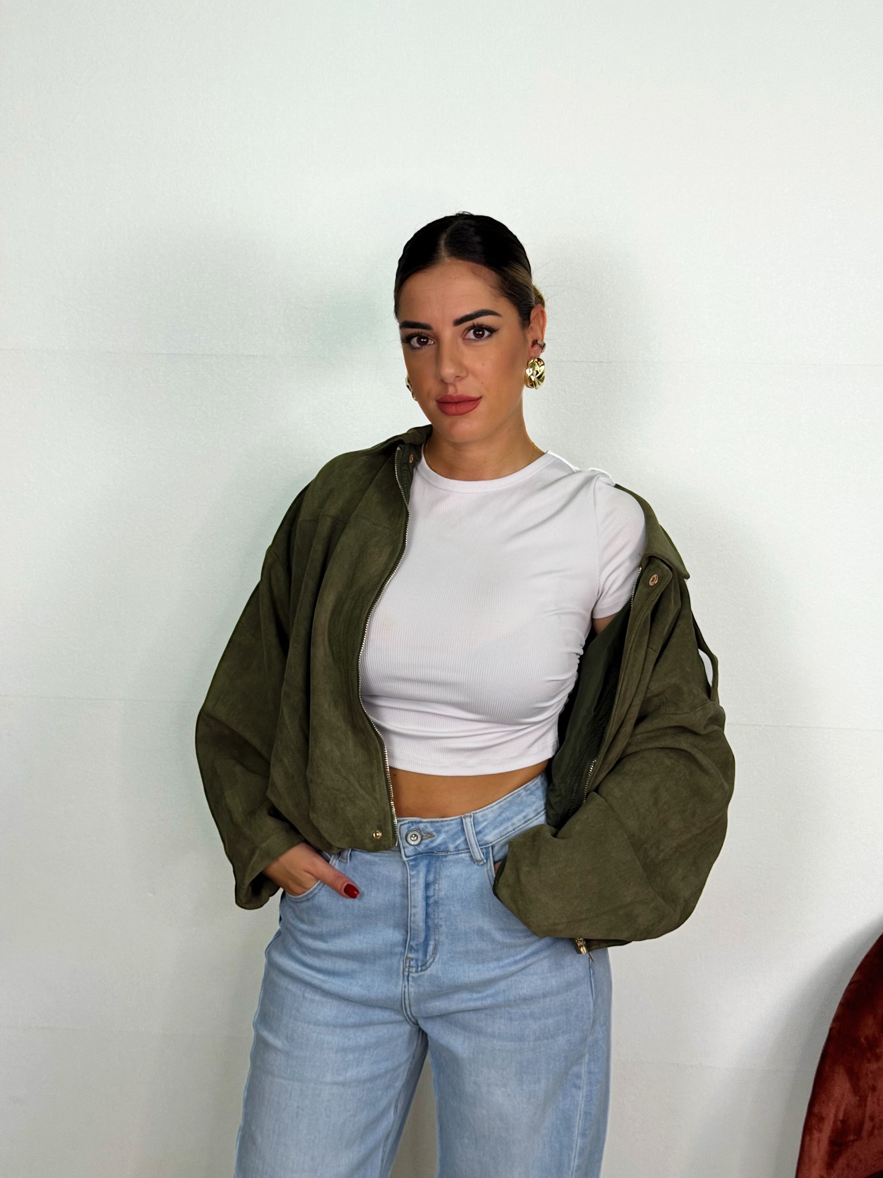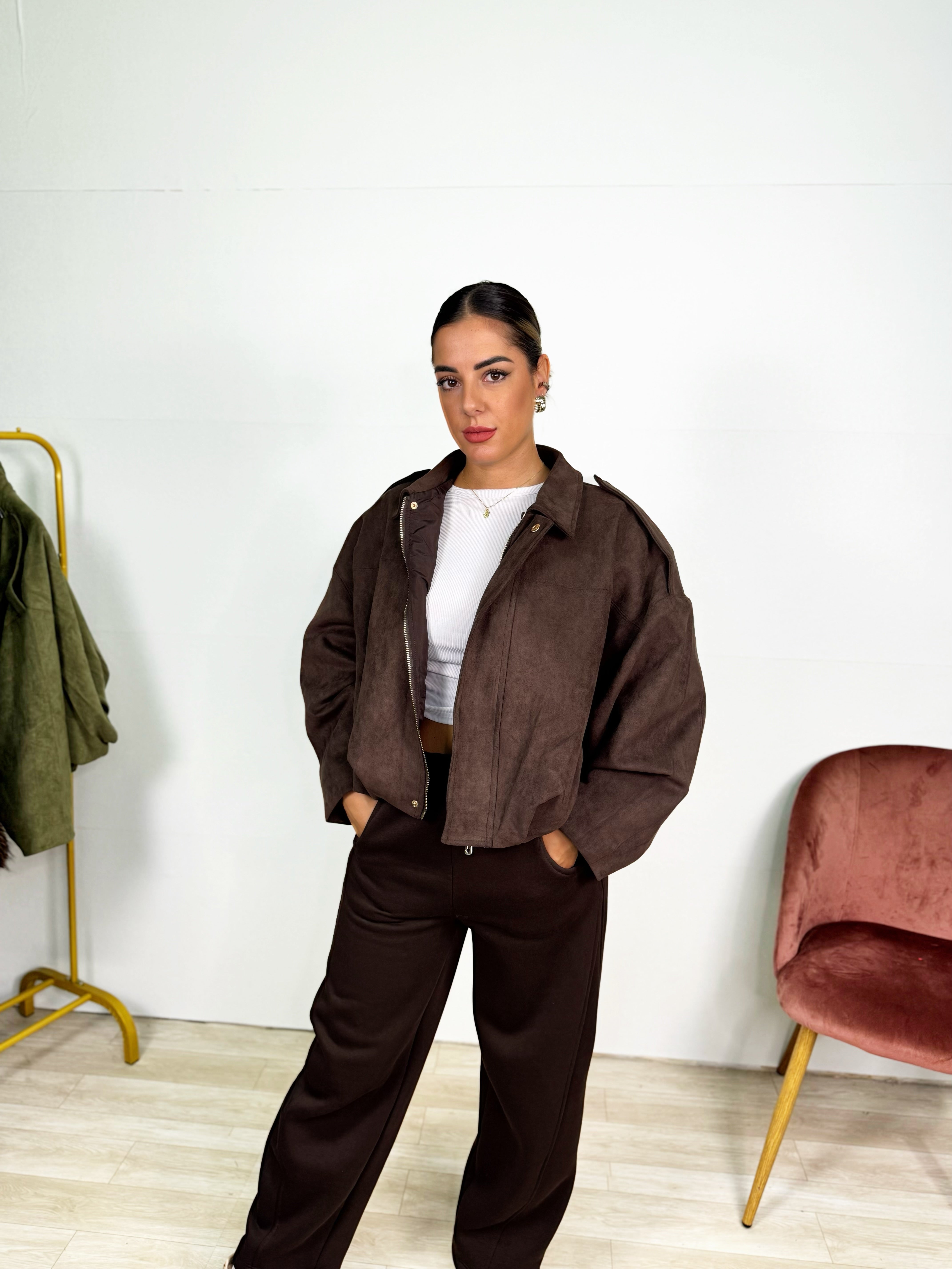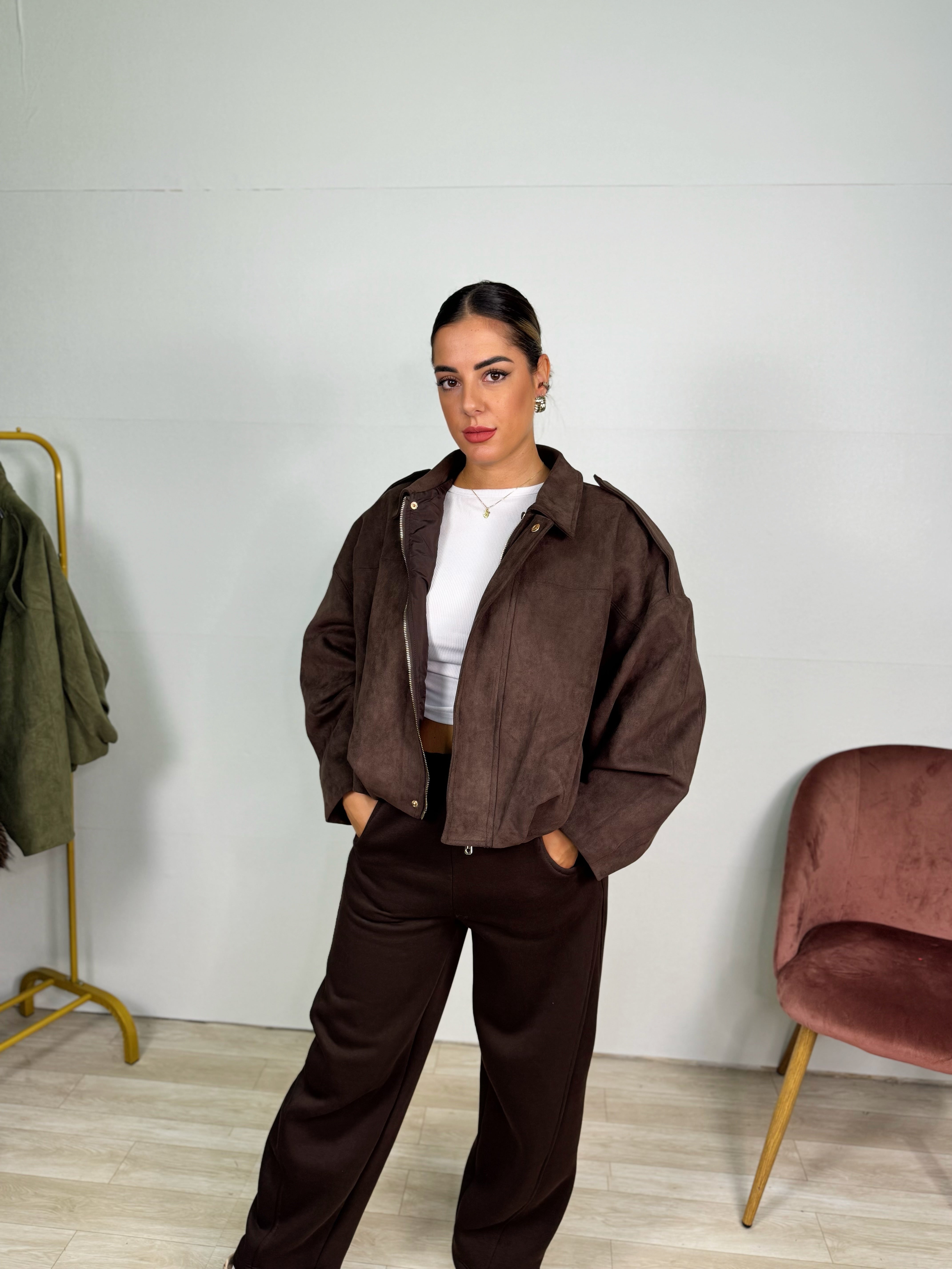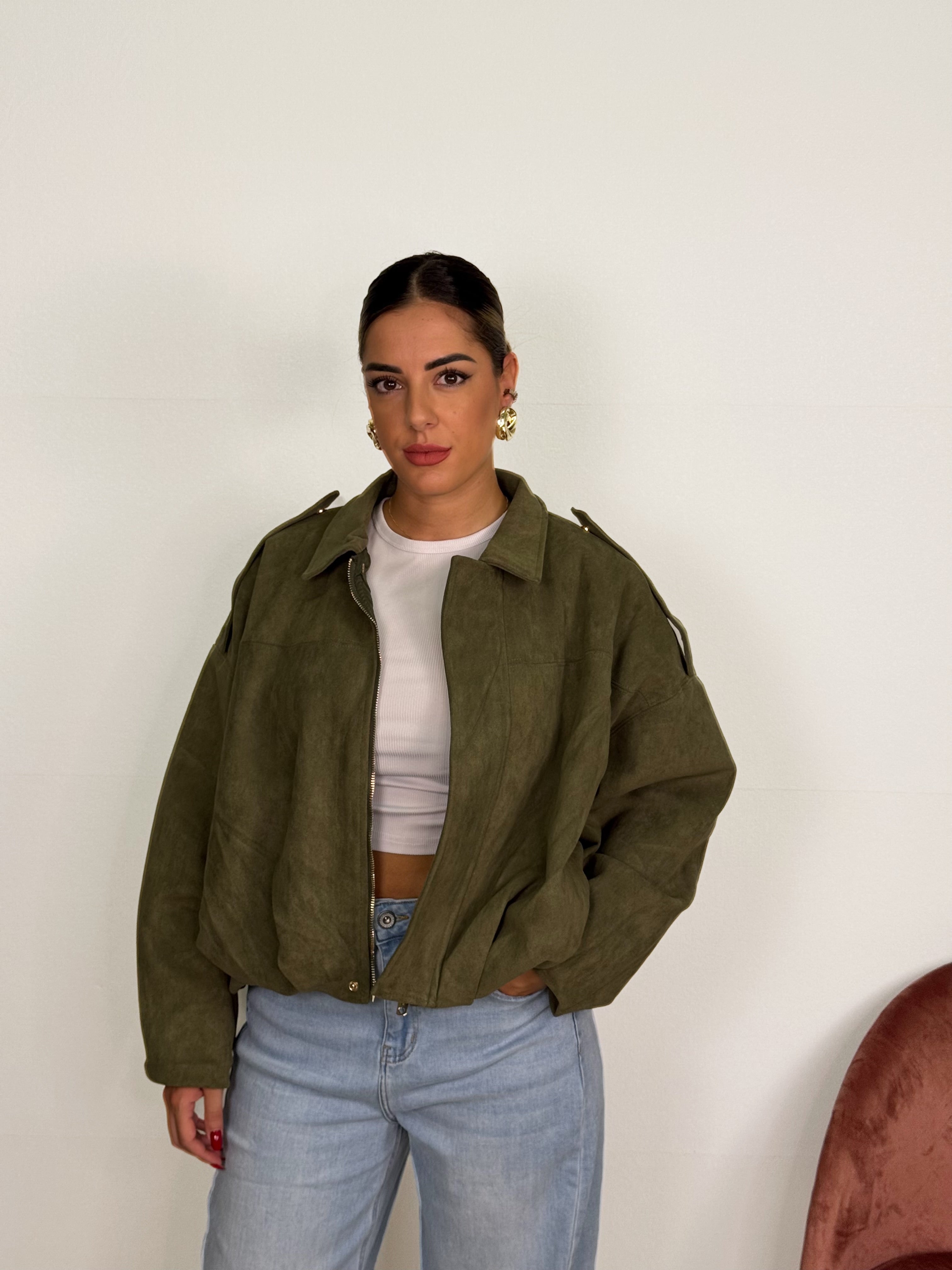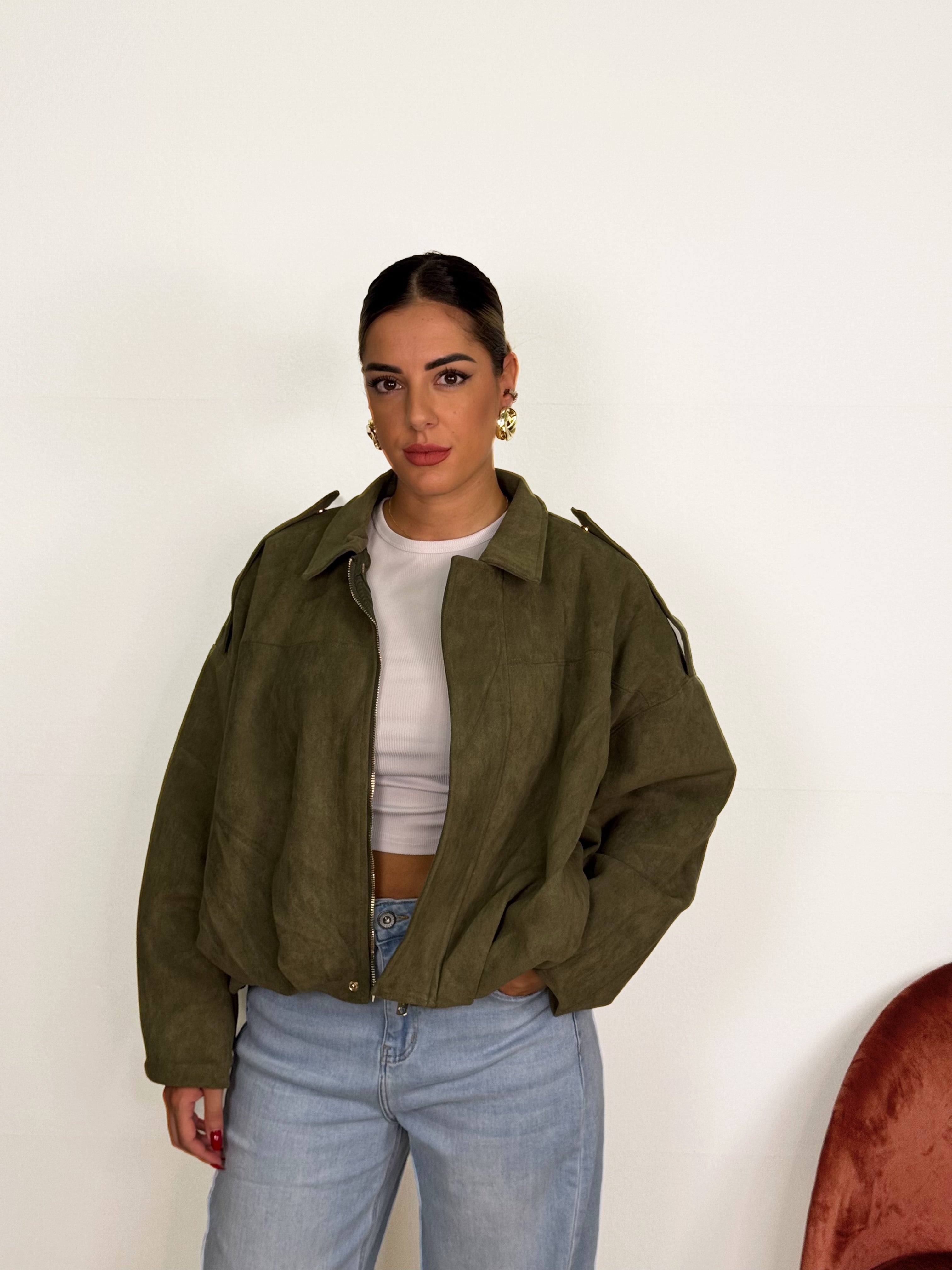 Bomberino in camoscio disponibile in verde e marrone ! Taglia unica