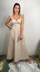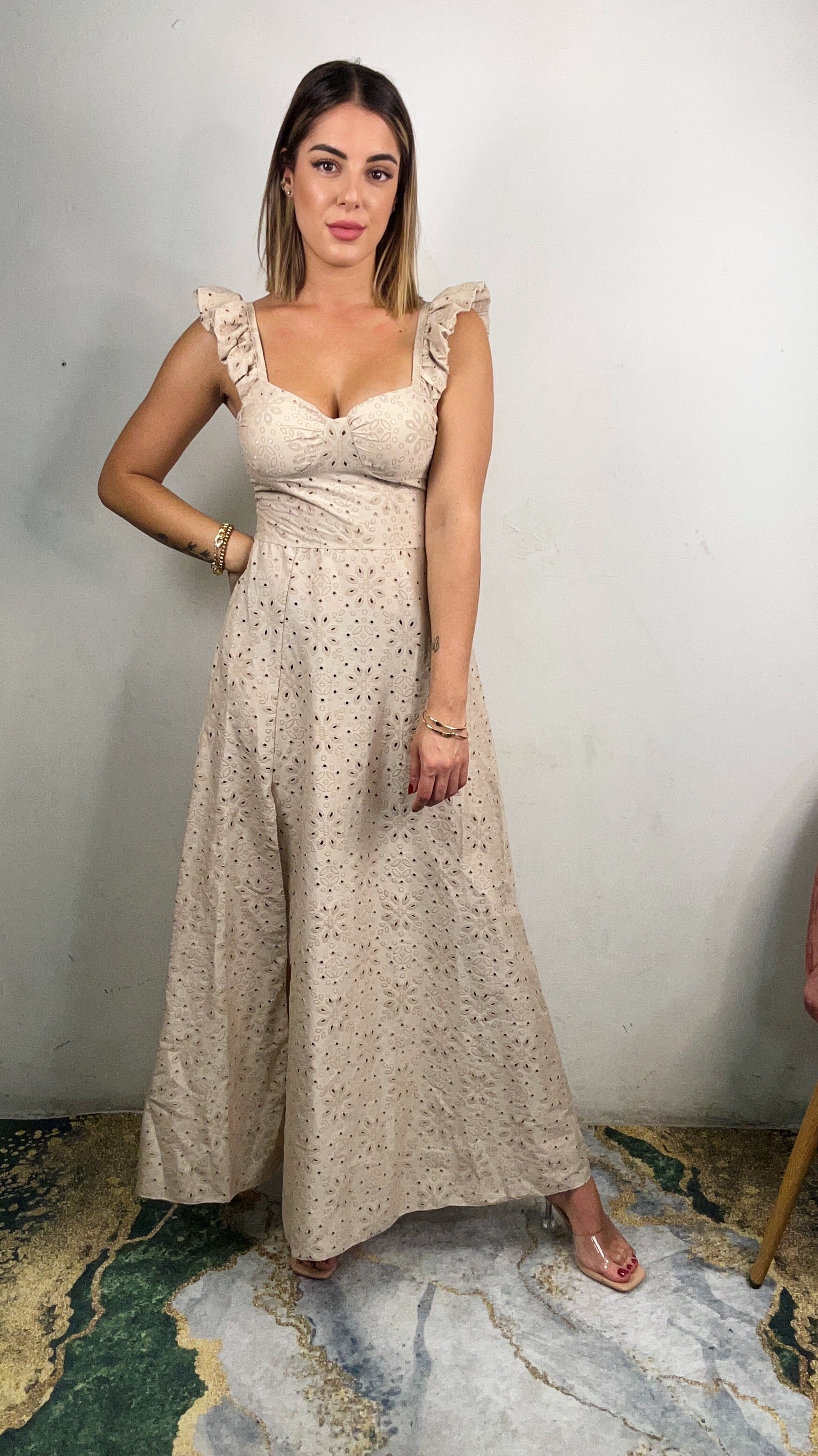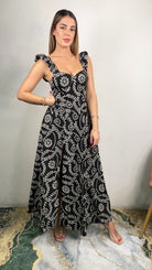 Abito taglia unica disponibile in bianco, beige e nero con fantasia bianca.