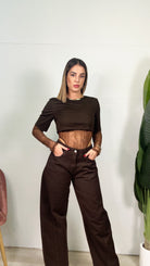 Body taglia unica di pizzo con t-shirt crop attaccata.
