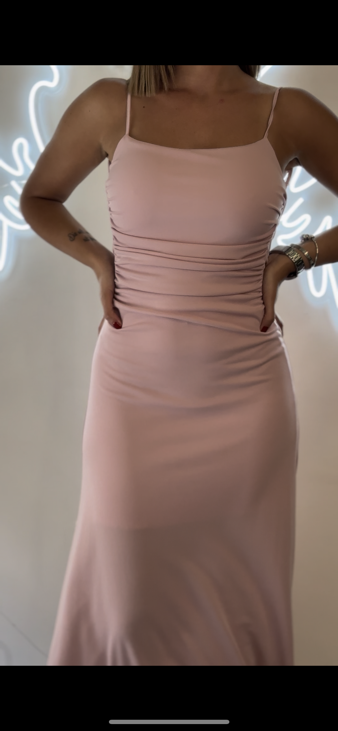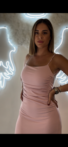 Abito con tessuto elasticizzato e spalline regolabili, disponibile in rosa, giallo e rosso